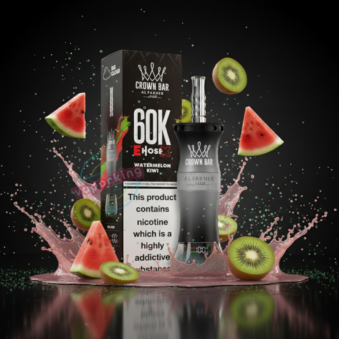 Enjoy deep, genuine shisha taste with the Al Fakher E Hose X 60000 Puffs Crown Bar Hookah Disposable Vape. It takes the well-loved flavor of Al Fakher shisha and puts it into a portable device that lasts far longer than regular disposables. With up to 60,000 smooth puffs, it’s a great choice for anyone who wants rich flavor, strong performance, and the ease of a grab-and-go vape.